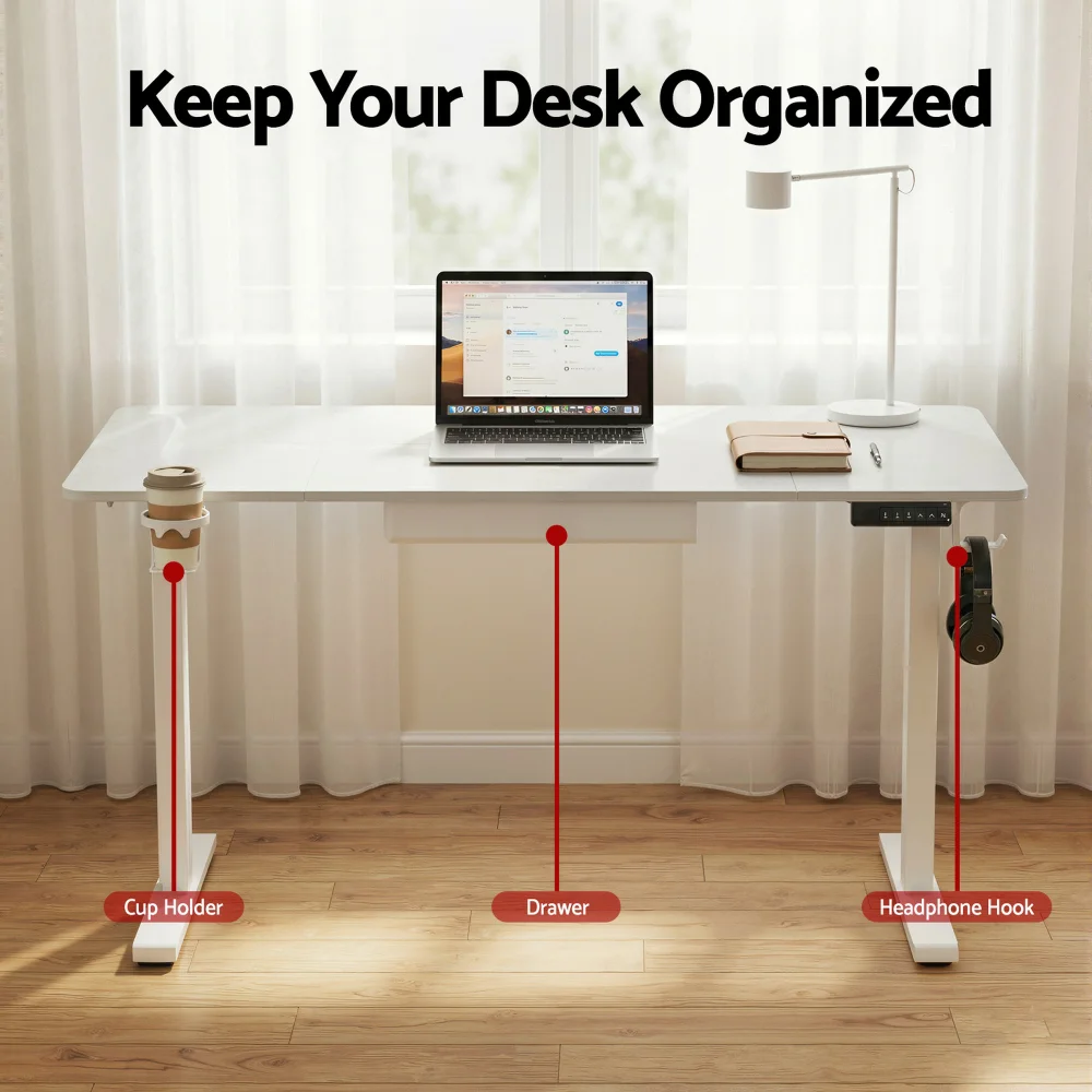 Artiss 140cm Electric Standing Desk - Adjustable Height 72-121cm, Motorised with Drawer & Cable Management System