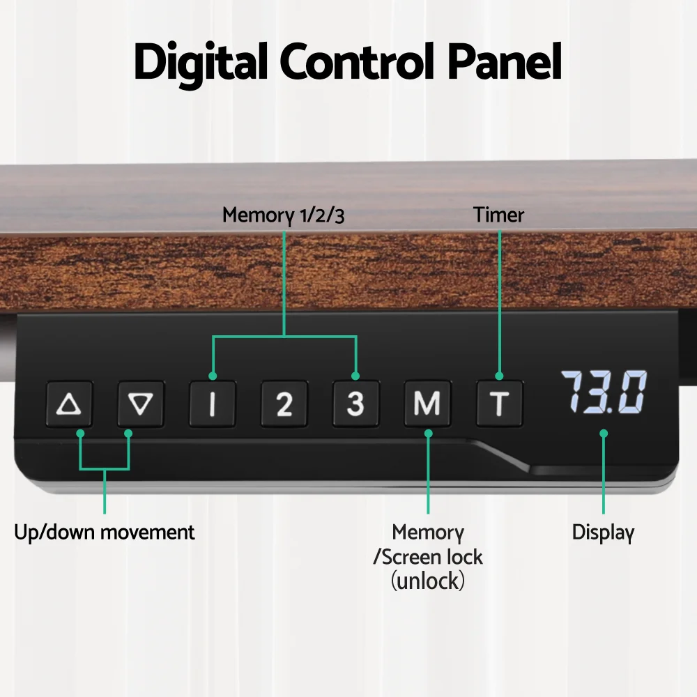 Revitalise your workspace with the Artiss Electric Standing Desk Adjustable Motorised 120CM L Shaped in Rustic Brown. Designed to maximise corner space, this desk offers a seamless transition between sitting and standing, promoting better posture and health. Its stepless height adjustment, powered by a smooth single motor, ensures ultra-quiet operation and low energy consumption. The intuitive digital display control allows you to save up to three preset heights, while the sit/stand reminder keeps you active throughout the day. With practical features like a headphone hook and cable grommet, this desk is as functional as it is stylish, boasting a high-quality powder-coated frame for lasting sturdiness. Easy to set up, it's the perfect addition to any modern office.