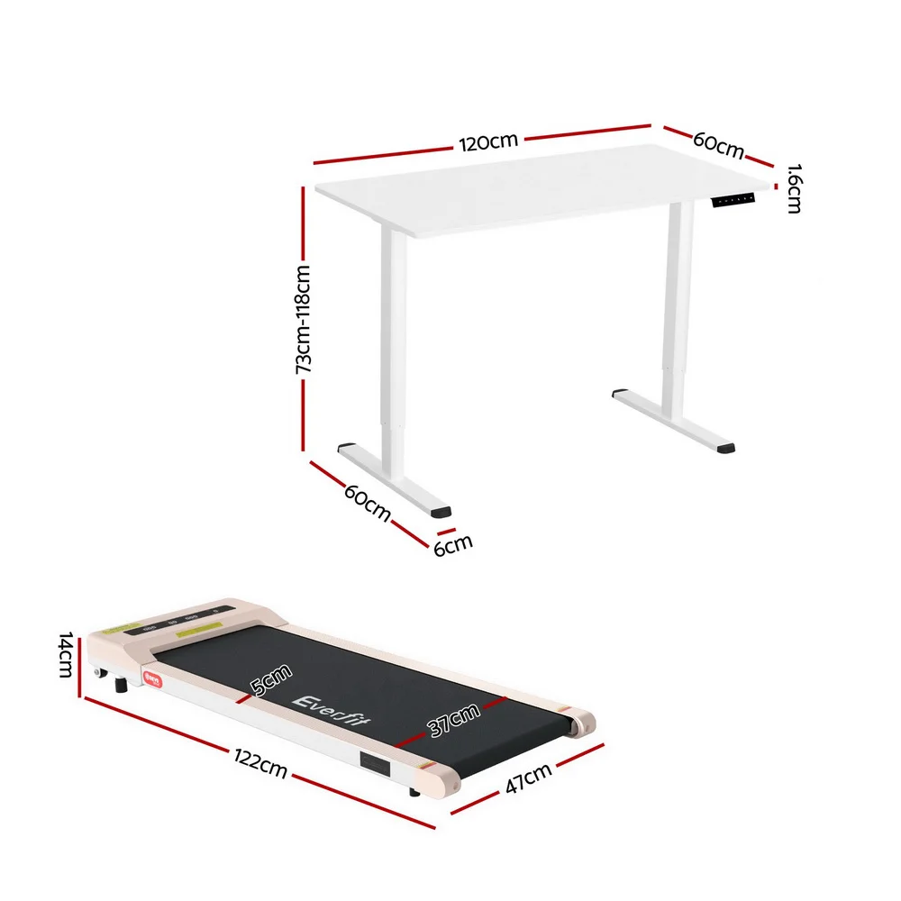 Artiss Electric Standing Desk with 120cm White Table and Everfit 10km/h Walking Pad, Adjustable Height, Home Office