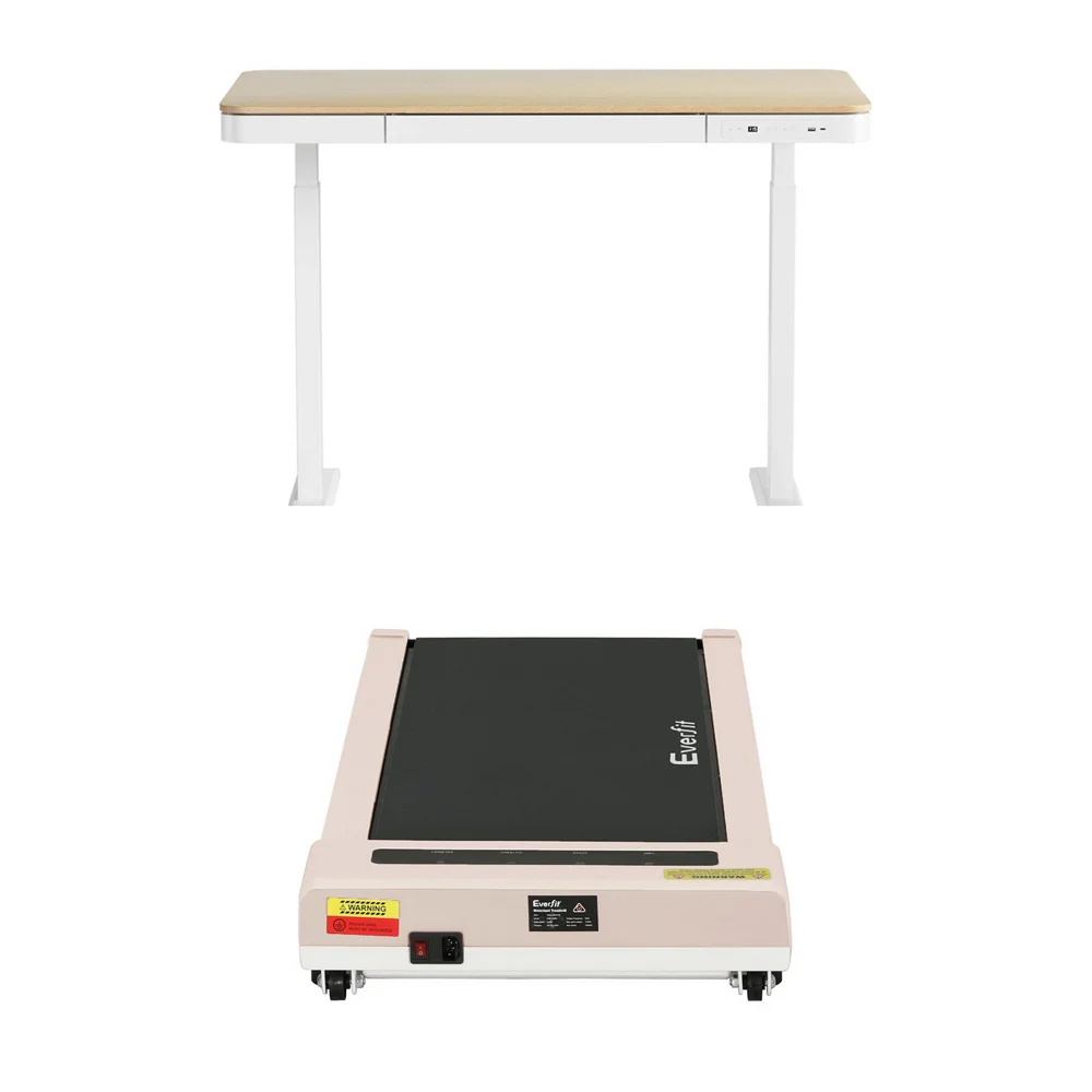 Artiss 2-in-1 Standing Desk & Treadmill Combo: Adjustable Oak Desk, 1-10km/h Walking Pad, Bluetooth, USB, Max Load 60kg