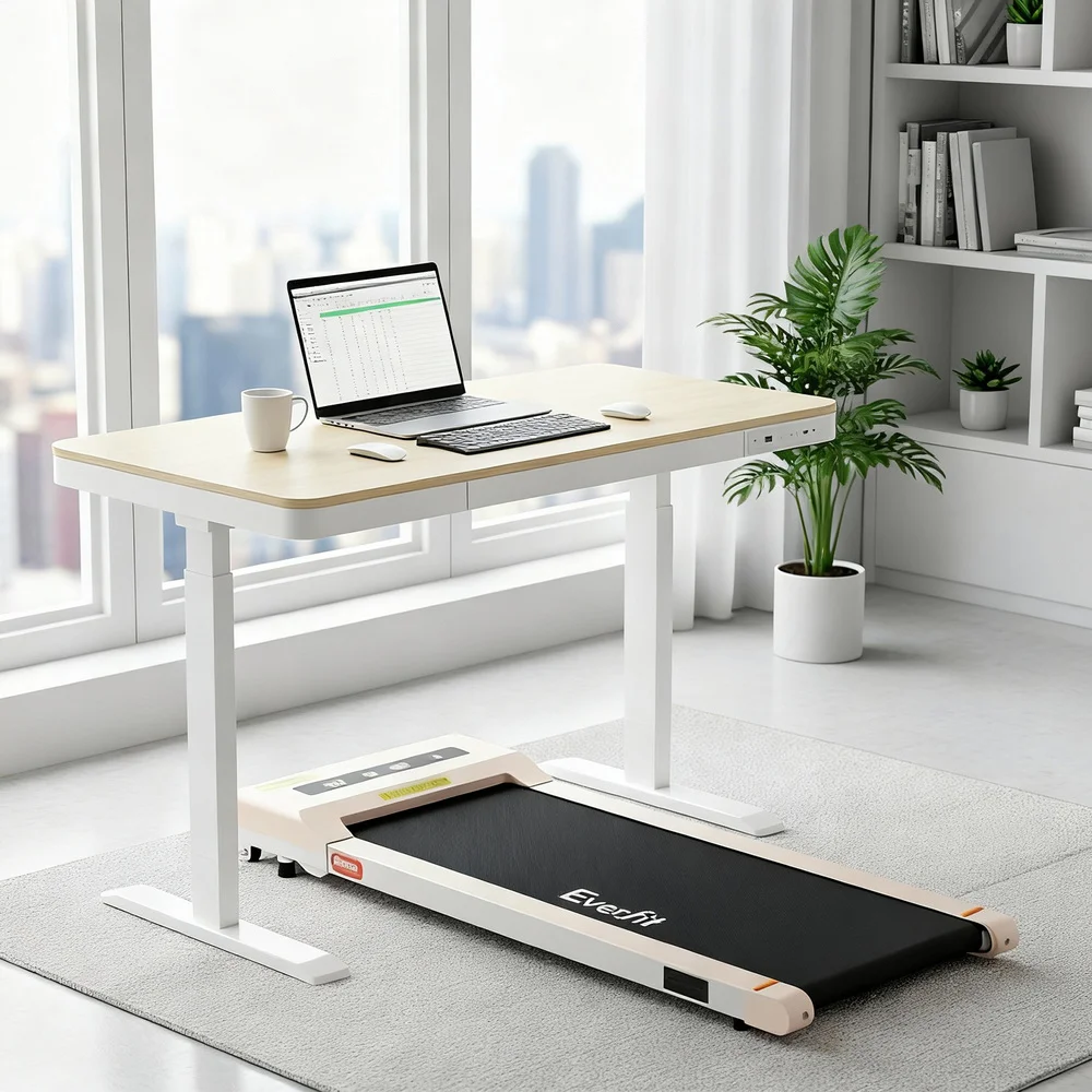Introducing the Artiss Electric Treadmill with 120cm Automatic Standing Desk Walking Pad 360mm, a revolutionary 2-in-1 solution for the modern home office. This innovative combo seamlessly integrates a stepless height-adjustable standing desk with a powerful, energy-efficient treadmill, allowing you to maintain an active lifestyle while working. With walking speeds from 1km/h to 10km/h, control your activity via the digital panel or Bluetooth app. The treadmill's shock-absorbing belt ensures a comfortable walk, while the desk features a large drawer, USB ports, and smooth edges for an organised workspace. Certified for safety, it's the ultimate work-life balance tool.
