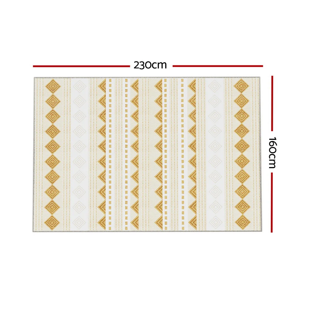 Artiss Ella 160x230cm Washable Area Rug, Boho Crystal Velvet Carpet, Non-Slip, Soft Short Pile, Yellow/White