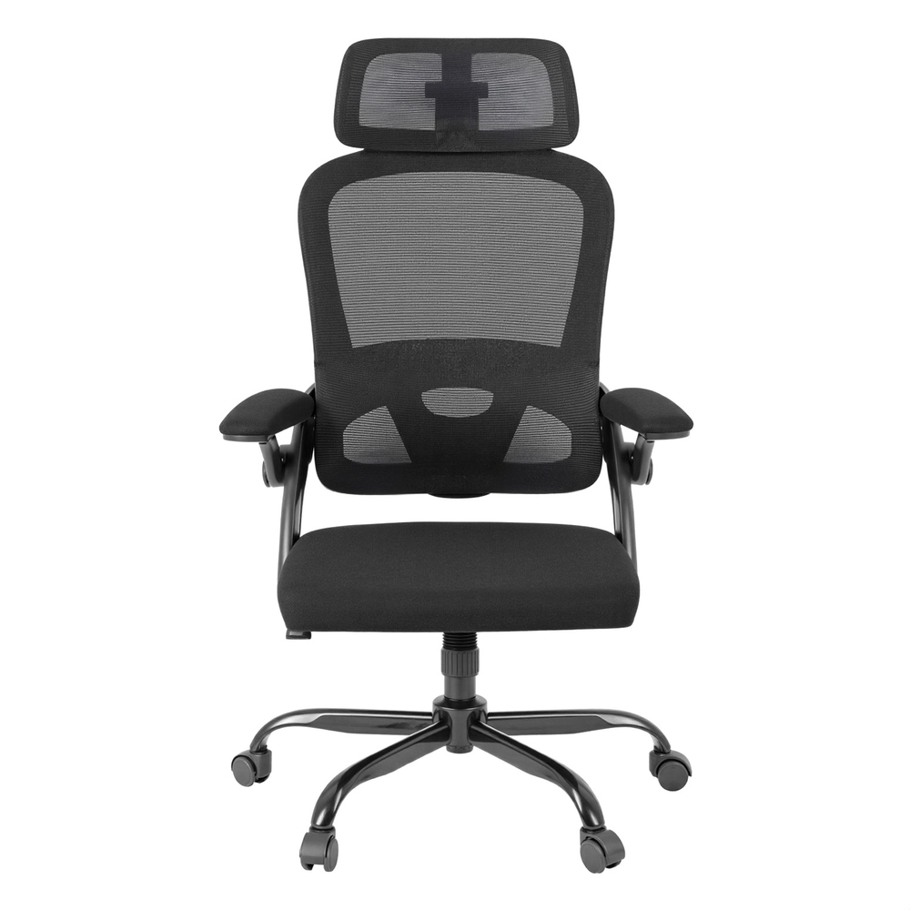 Artiss 2x Mesh Office Chair Set, Mid Back, Flip-Up Armrests, Adjustable Height, Lumbar Support, Black, 120kg