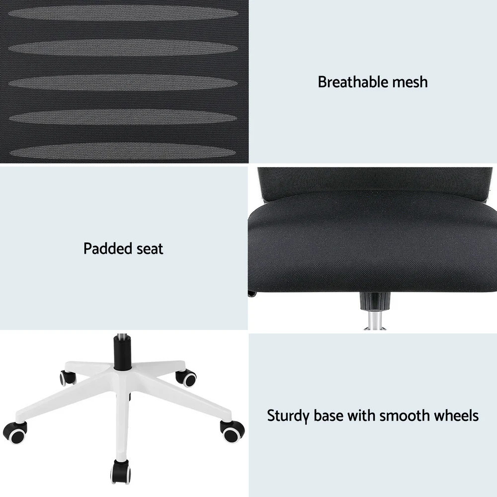 Artiss Ergonomic Mesh Office Chair - Black/White, Lumbar Support, 10cm Height Adjustable, 360° Swivel, Easy Assembly