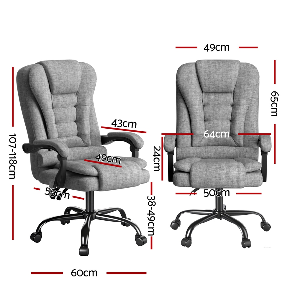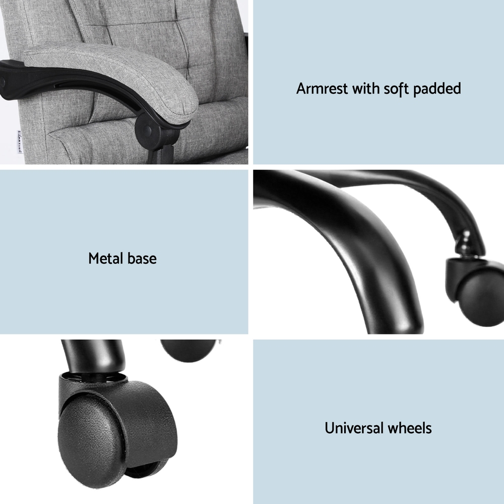 Artiss Executive Office Chair 4-Point Massage Recliner, Ergonomic Adjustable Linen Seat, 135° Recline, Grey, 150kg