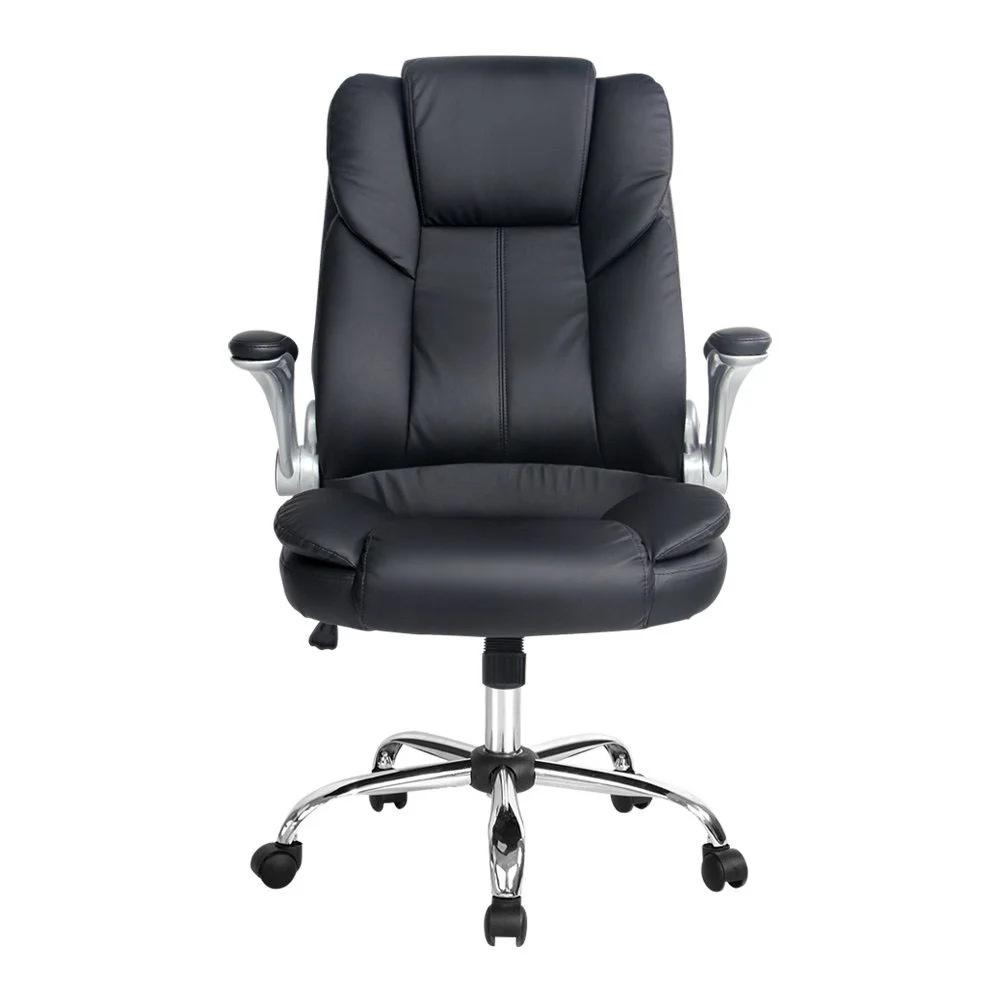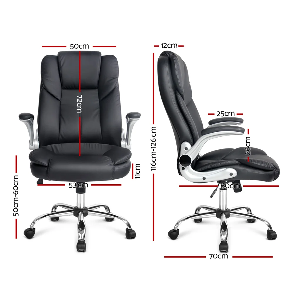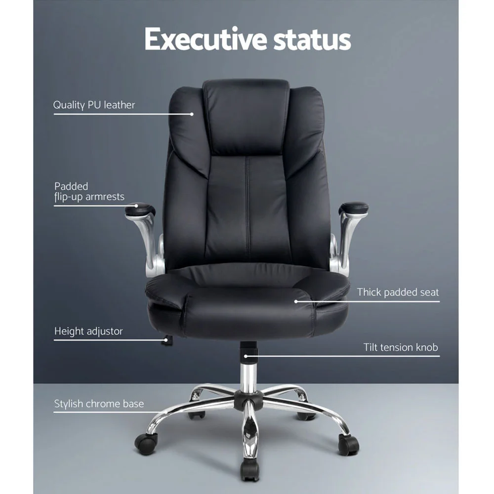 Artiss Kea Executive Office Chair Black PU Leather, High Back, Lumbar Support, Tilt, Retractable Armrests, 150kg