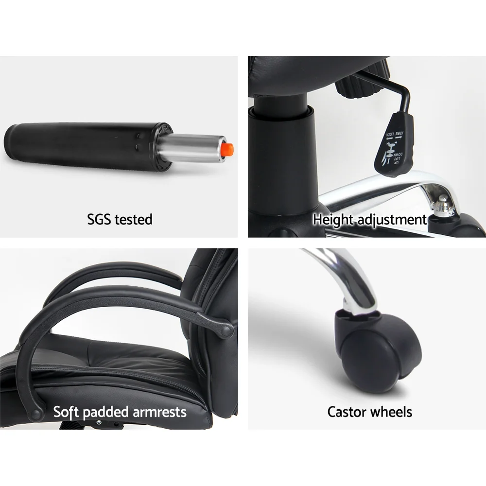 Artiss Executive Office Chair - Premium Black PU Leather, High-Back, Padded Comfort, Chrome Base, 360° Swivel