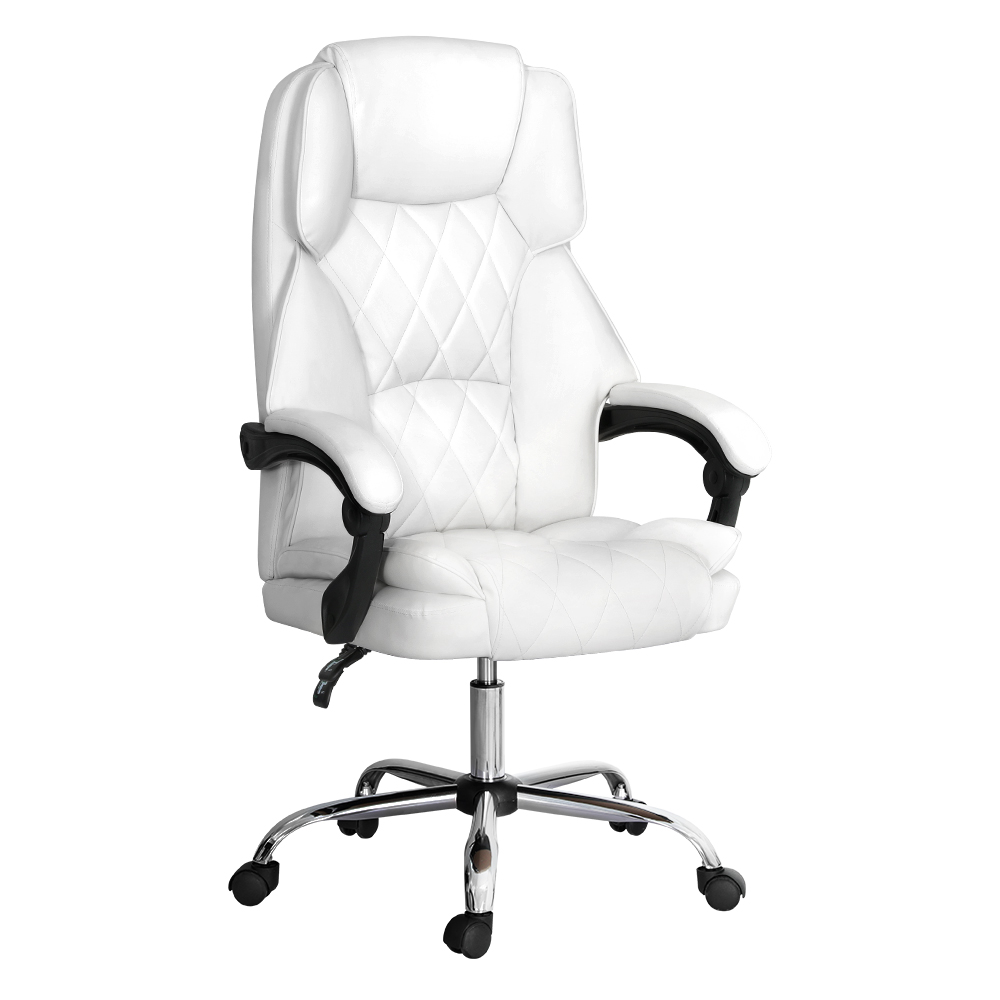 Artiss Executive Office Chair, PU Leather Recliner, High-Back, White, 67x67x126cm, Adjustable Comfort, Chrome Base