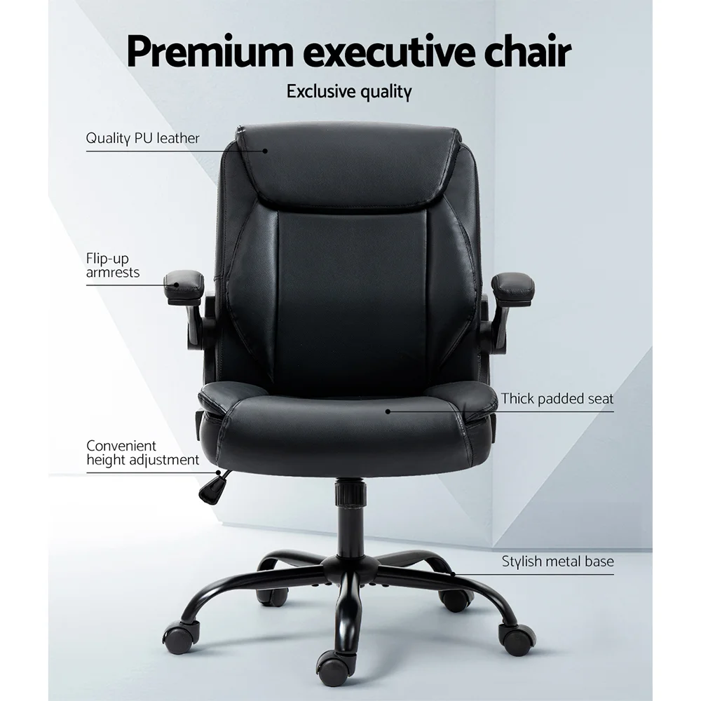 Artiss Executive Office Chair, PU Leather, Mid-Back, Black, 67x65x95-103cm, Ergonomic, Adjustable, Home Office Comfort