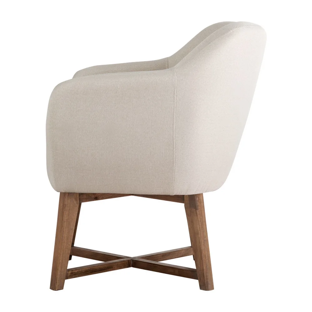 Artiss Fabric Tub Lounge Armchair, Faux Linen, 67x70x82cm, Beige - Modern Comfort with Solid Rubber Wood Base