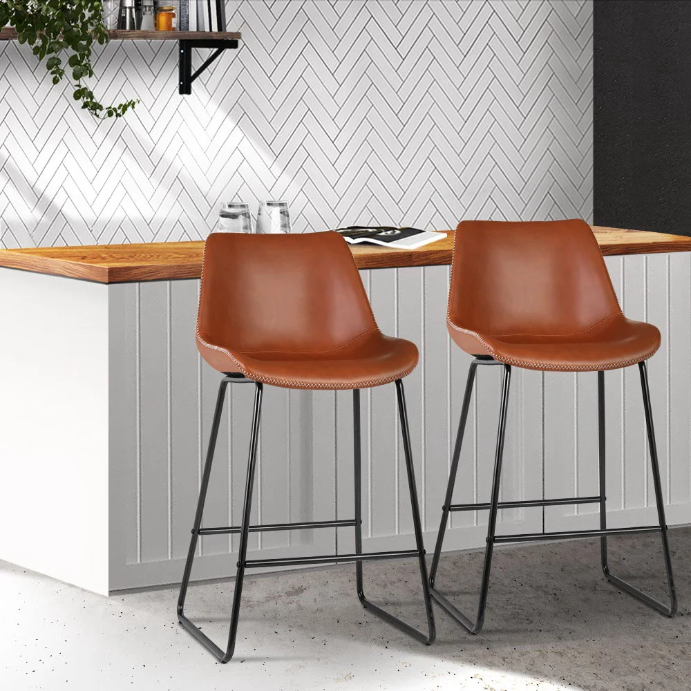 Artiss Fenella Bar Stools - Set of 2, 70cm Seat Height, Brown PU Leather, Steel Frame, Elegant Design, Easy Assembly