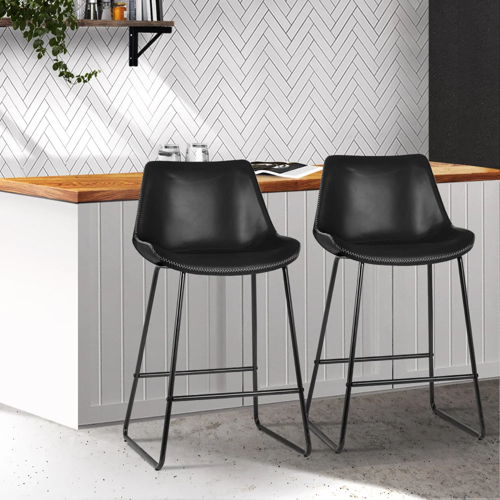 Artiss Fenella Bar Stools Set of 2 - Black PU Leather, 70cm Seat Height, Steel Frame, Elegant Design, Easy Assembly