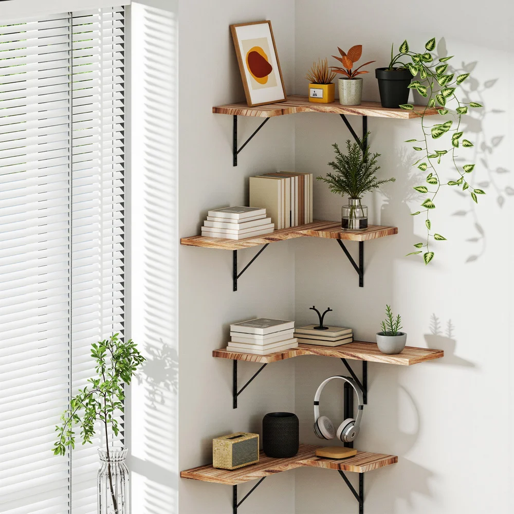 - 4-piece floating corner shelf set