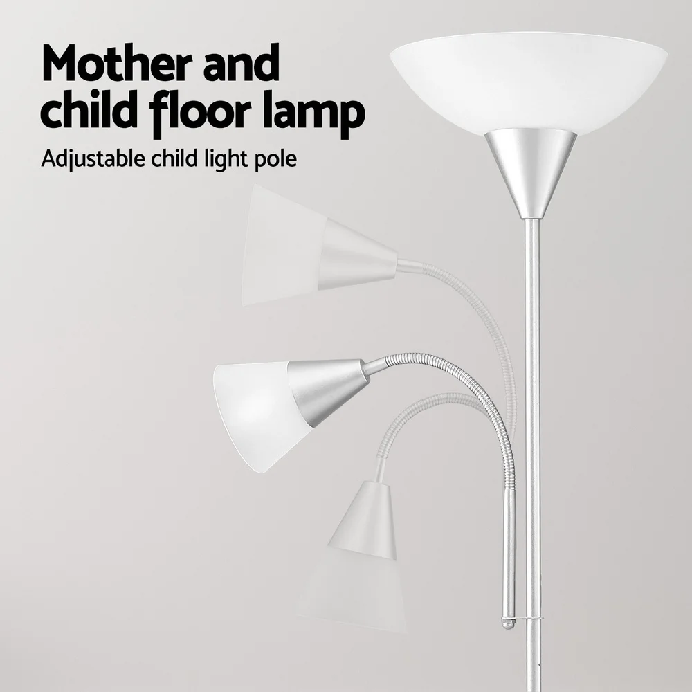 Artiss Floor Lamp Mother and Child Silver Metal 180cm Modern Reading Light with Adjustable Arm and Stable Base