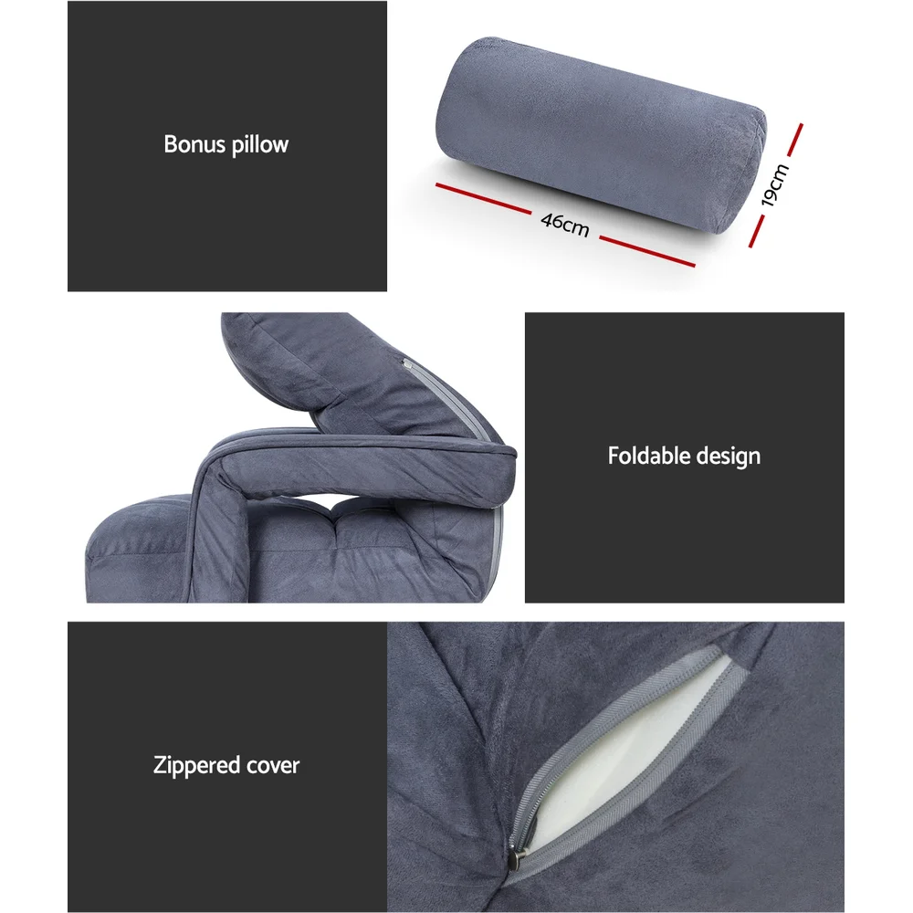 Artiss Charcoal 2-Seater Floor Lounge Sofa Bed with Adjustable Positions, Suede Fabric, Steel Frame, and Pillows
