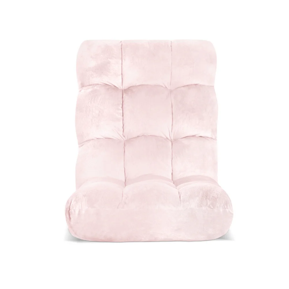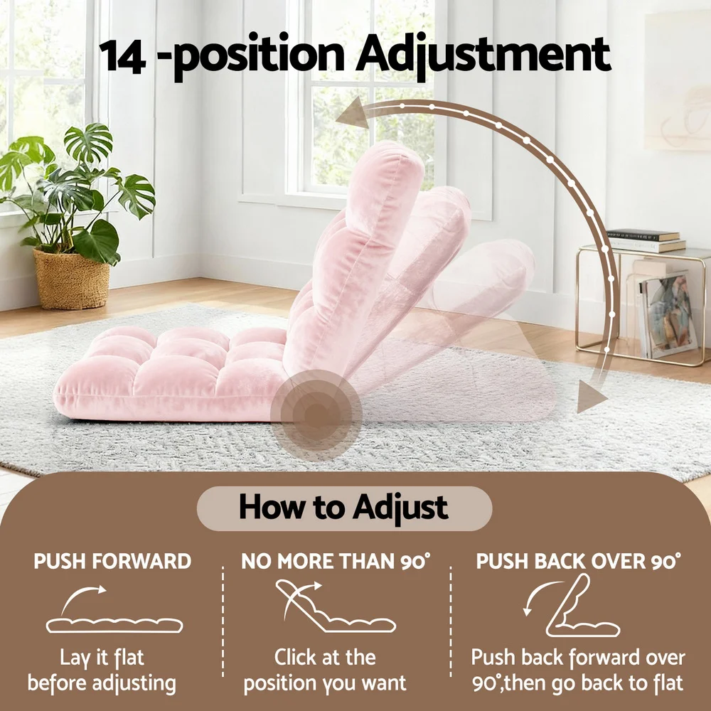 Artiss Pink Flannel Fabric Floor Lounge Sofa Bed - Adjustable 14 Positions, Cushioned Comfort, Sturdy Steel Frame