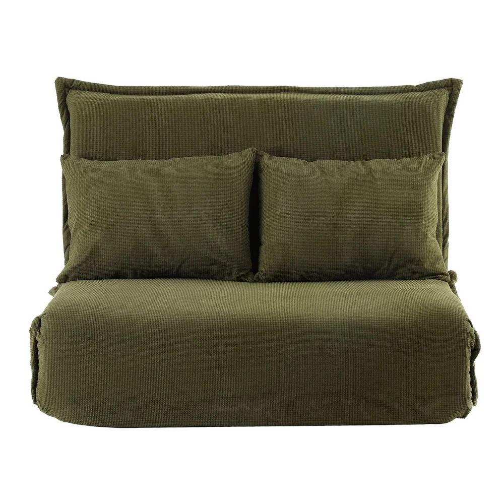 Transform your relaxation experience with the Artiss Floor Lounge Sofa Bed, Foldable 2 Seater in Green. This compact yet versatile piece features a 6-level adjustable back and leg support system for ultimate comfort. The premium corn-kernel corduroy upholstery is soft, durable, and stylish, complemented by charming cat-ear style edges and extra pillows. High-resilience foam provides excellent support, while a sturdy metal frame ensures durability. With its foldable design, this lounge is perfect for any space and requires no assembly—just unfold and enjoy!