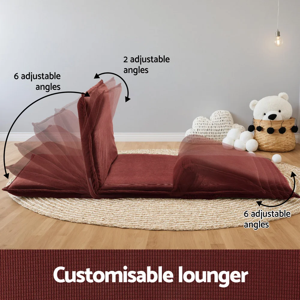 Artiss Foldable Floor Lounge Sofa Bed - 2 Seater, Adjustable, Corduroy Fabric, Orange, Cat-Ear Edge, No Assembly Needed