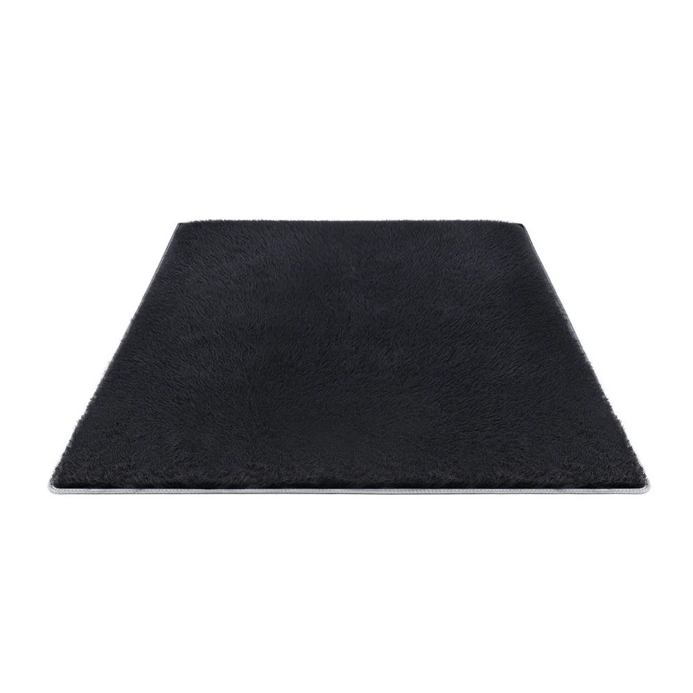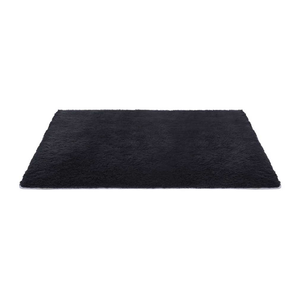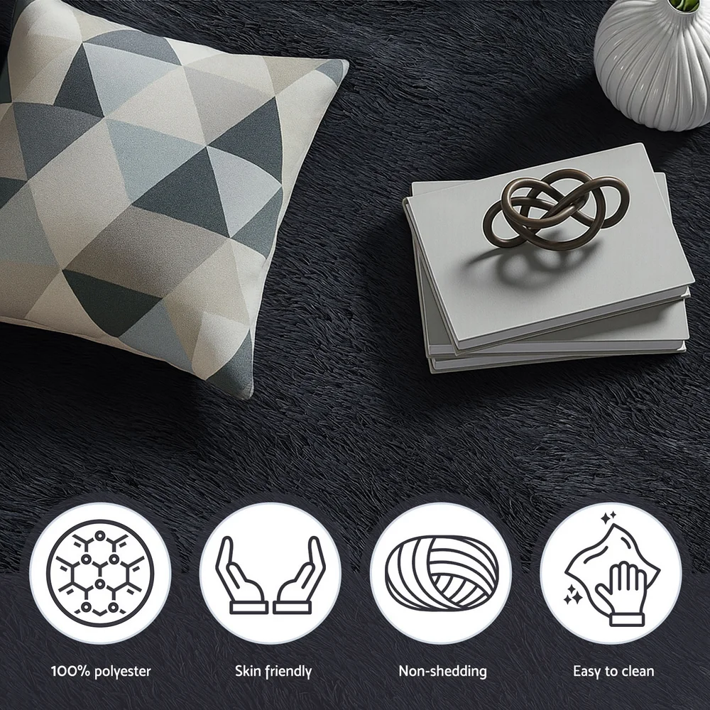 Artiss 140x200cm Black Shaggy Rug - Luxurious High-Pile Polyester Carpet with Foam Cushioning & Anti-Slip Backing