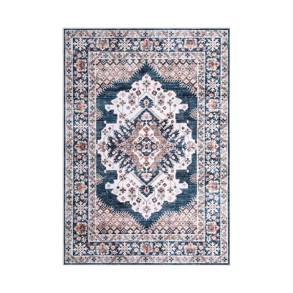 Artiss 240x340cm Washable Persian Area Rug, Teal & Blush, Vintage Design, Low-Profile, Anti-Slip, Polyester Carpet