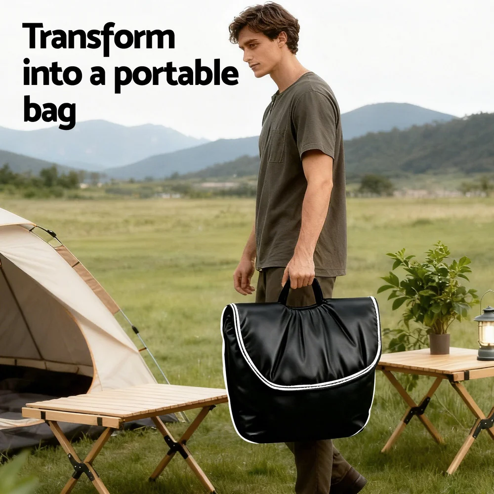 Unleash versatility with the Artiss Foldable Chair 2-In-1 Armchair Lounge Chair. This innovative chair effortlessly transforms from a stylish armchair to a portable tote bag, making it the perfect companion for picnics, festivals, and camping. Upholstered in tough, cat-scratch-resistant leather, it wipes clean in seconds and is filled with plush cotton and sponge for exceptional comfort. Built with a sturdy metal frame and non-slip rubber feet, it supports up to 100kg and requires no assembly. Ideal for any space, its compact design is perfect for small apartments and on-the-go adventures. Add a touch of elegance to your outings with Artiss.