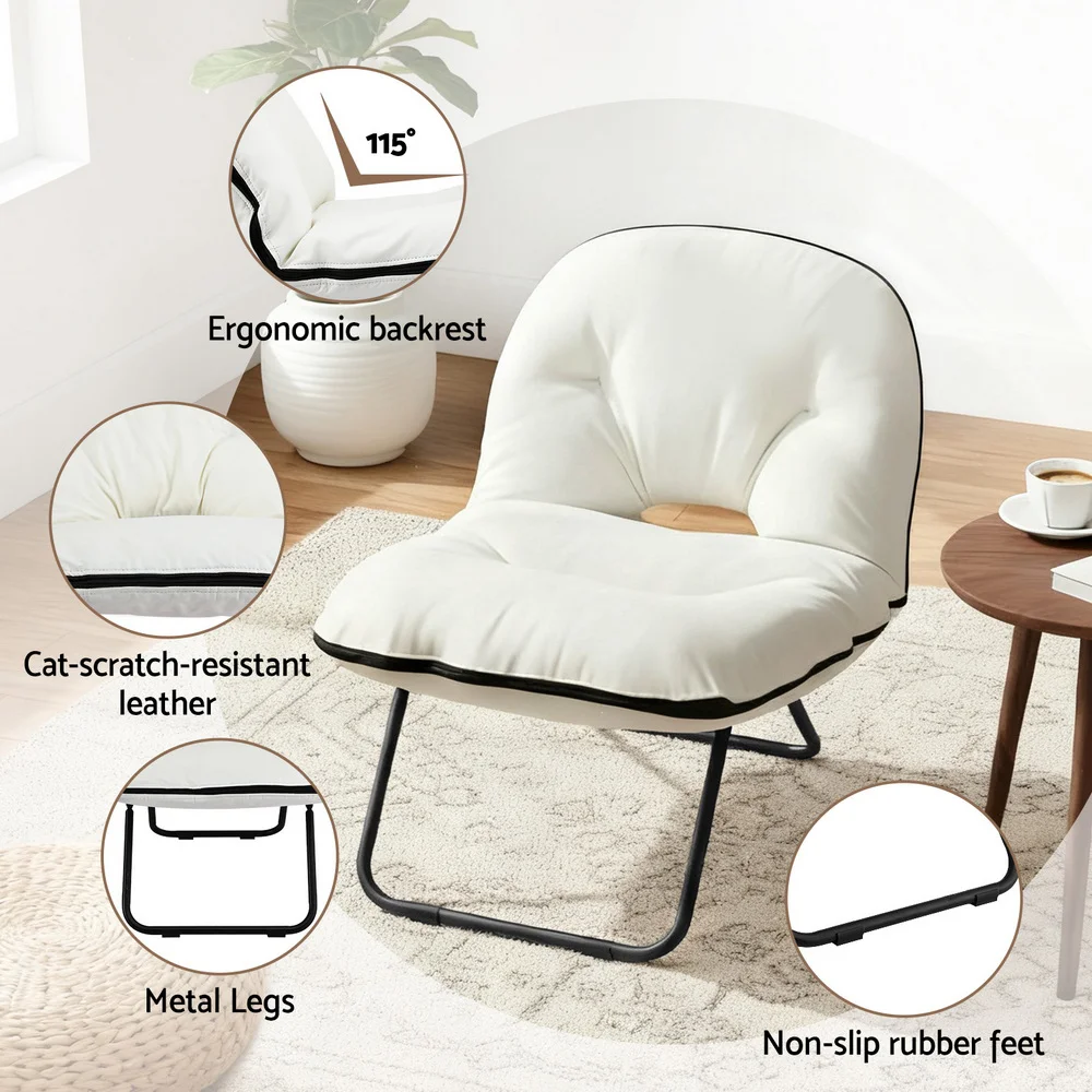 Artiss 2-in-1 Foldable Armchair Lounge - Portable, Cat-Scratch-Resistant White Leather, No Assembly, 100kg Capacity