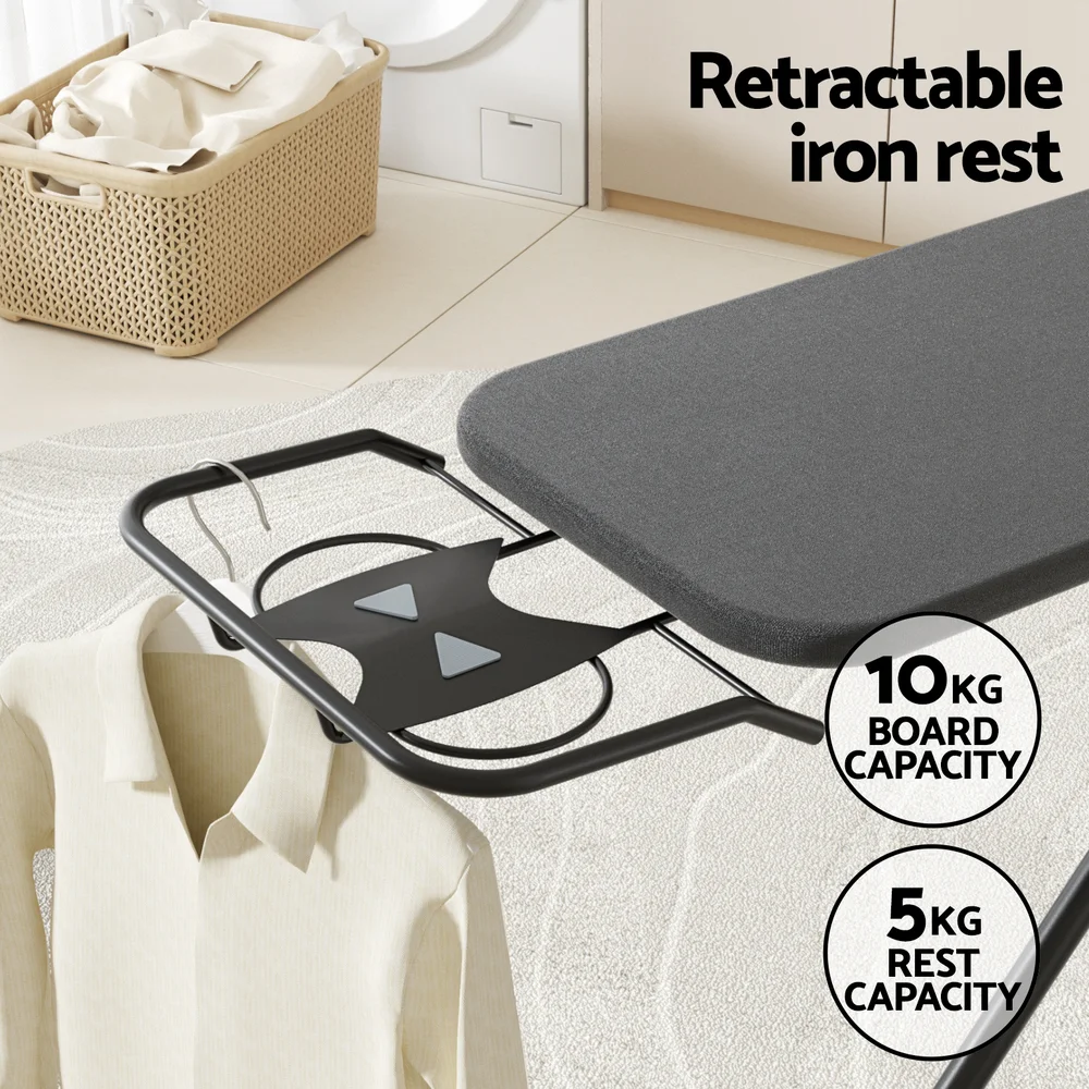 Artiss Freestanding Ironing Board Metal Frame 130x36cm Black - Foldable Iron Rest, Adjustable Height, Non-Slip Legs