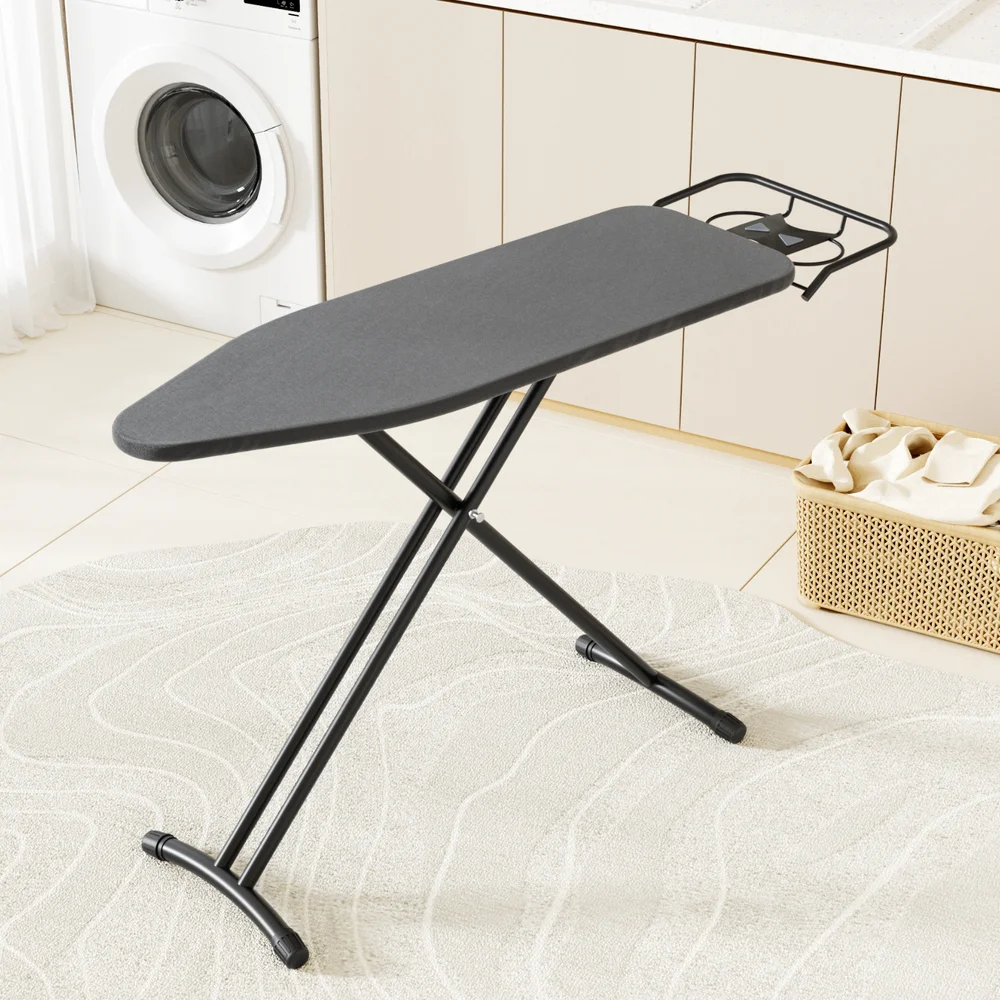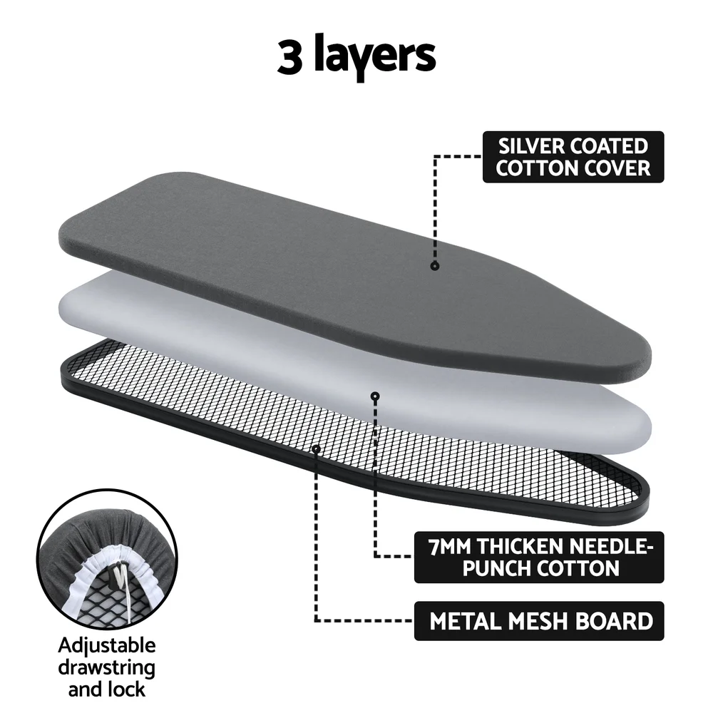 Meet the Artiss Ironing Board, the ultimate companion for your laundry needs. With a sleek black design, it features a foldaway iron holder and a robust metal frame for durability. Its 3-tier design allows 5 adjustable height settings, ensuring comfort for everyone. The secure locking mechanism and non-slip legs provide stability, while the height-adjustable handle makes ironing a breeze. Effortlessly foldable for storage, this board is ready to tackle any ironing task without assembly. Backed by a 1-year warranty.