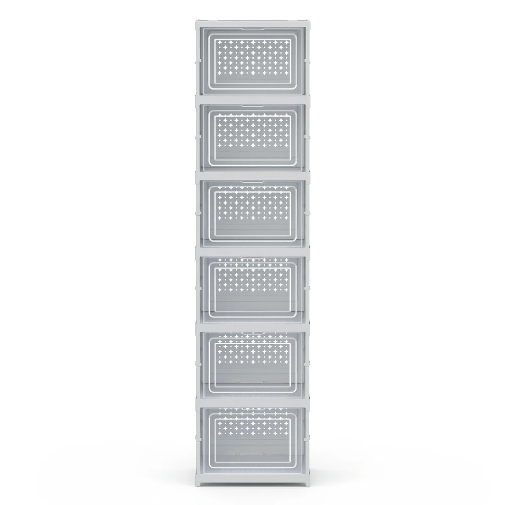Artiss Foldable 6-Tier Shoe Rack Organiser - Durable PP Plastic, Space-Saving 26x34.5x105cm, Easy Access, White