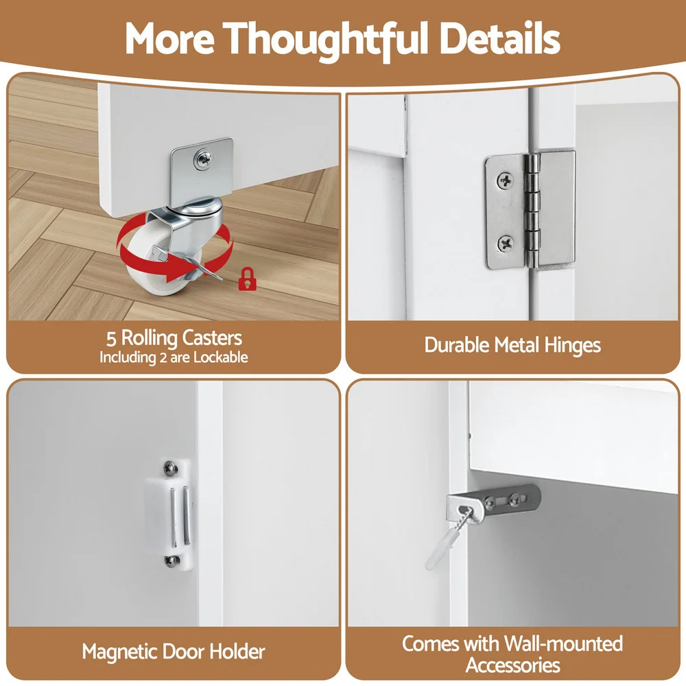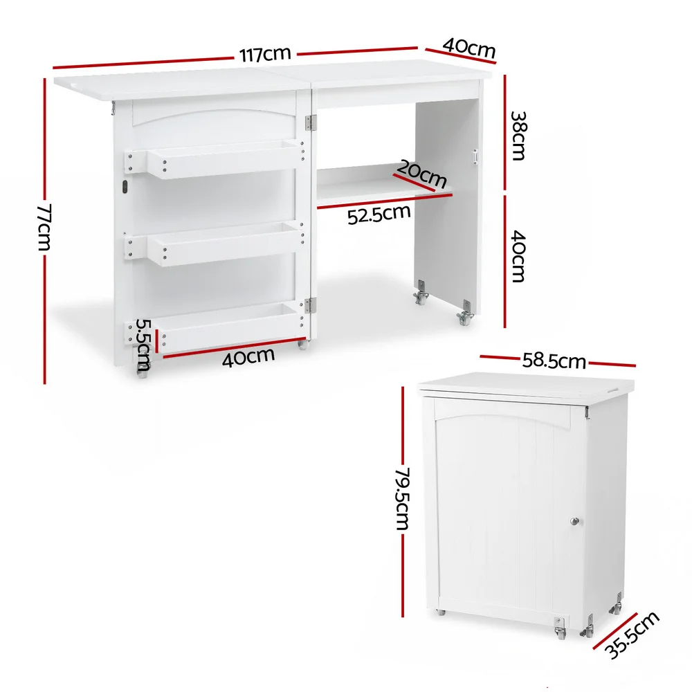 Artiss Multi-functional Folding Sewing Table - White Craft Station with Storage, Rolling Wheels, and Magnetic Closure