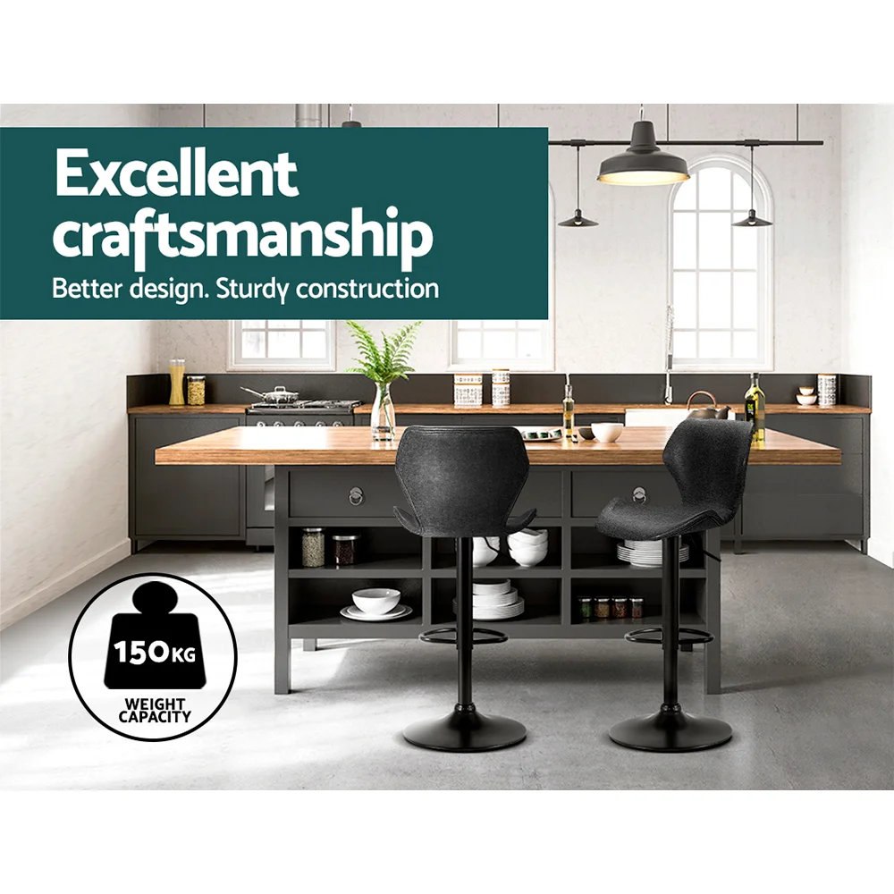 Artiss Frawley Bar Stools - Vintage Black PU Leather, Swivel, Adjustable Height, 360° Rotation, Set of 2 for Kitchen