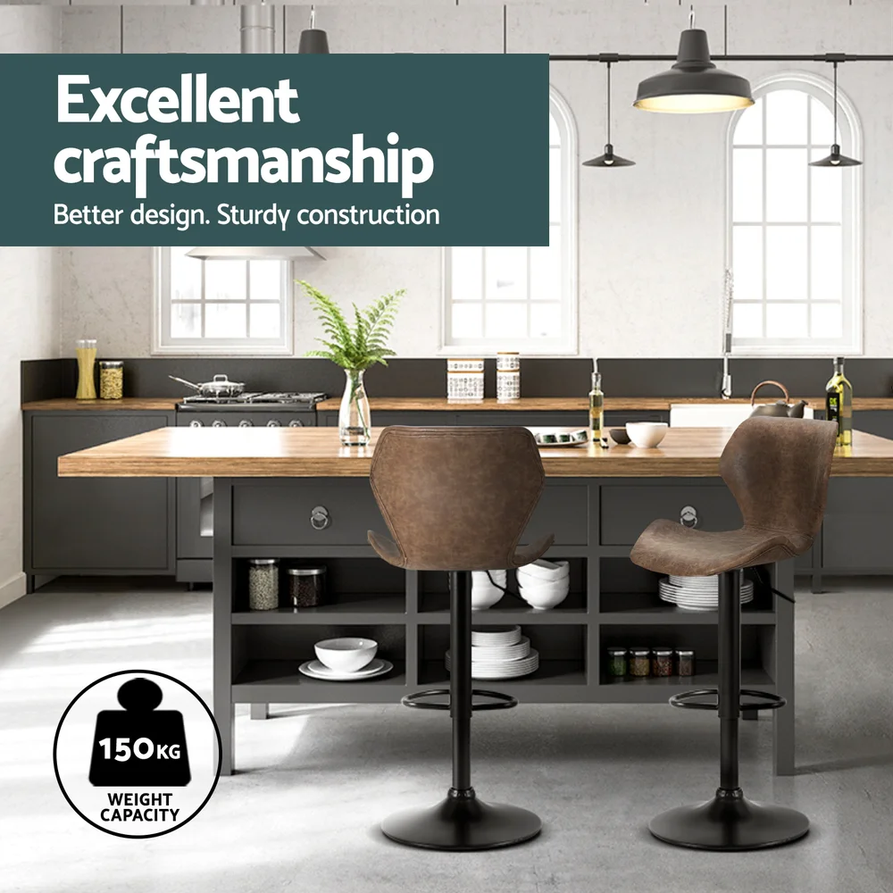 Artiss Frawley 4x Bar Stools - Vintage Leather, Adjustable Gas Lift, 360° Swivel, Brown, Timeless Elegance