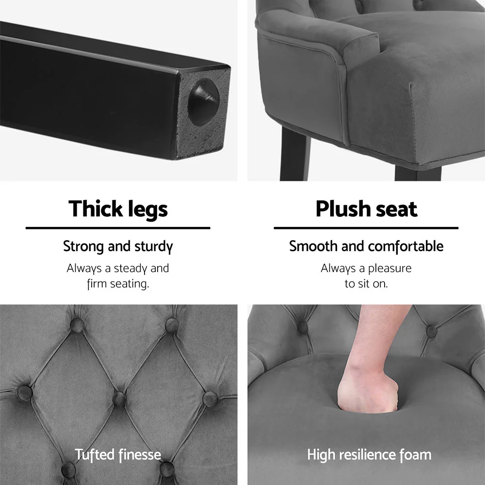 Artiss Dining Chairs Set of 4, Grey Velvet Upholstery, French Provincial Style, Tufted Back, Rubber Wood Legs