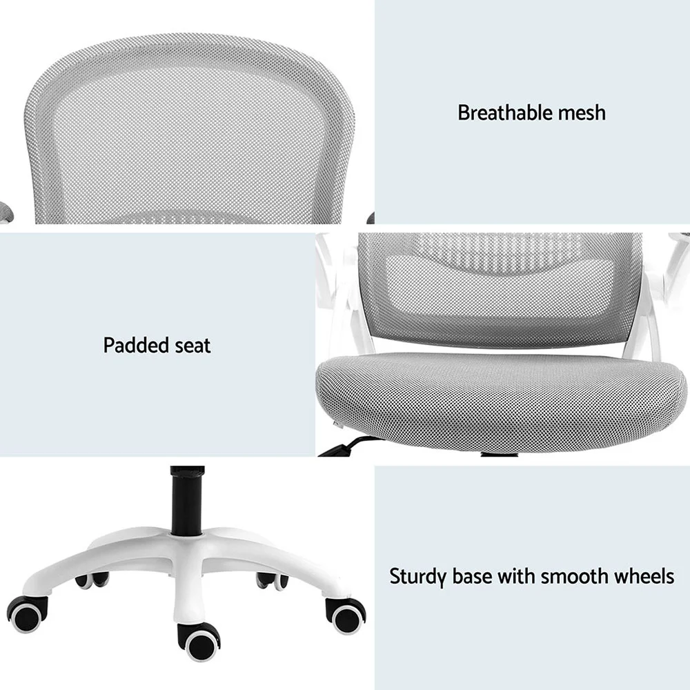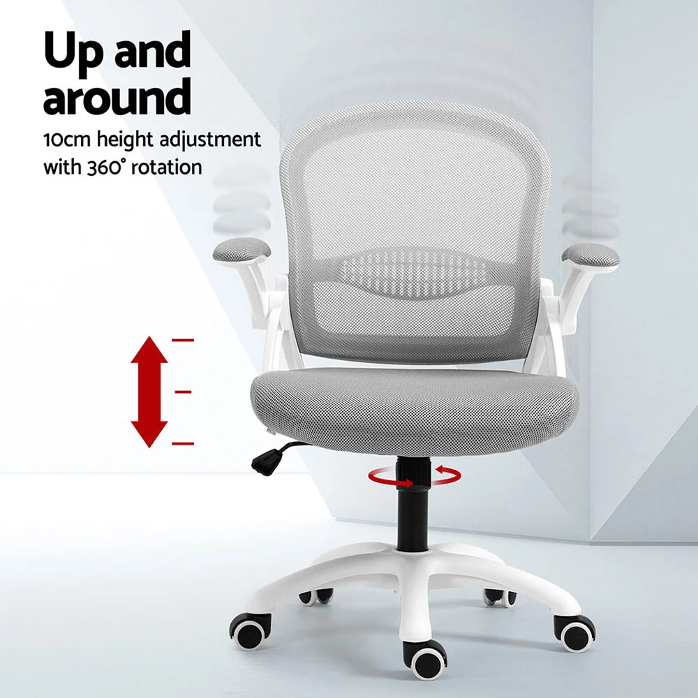Artiss Galene 2x Grey Mesh Office Chair - Mid Back, Adjustable Height, Flip-Up Armrests, 360° Swivel, Breathable Comfort