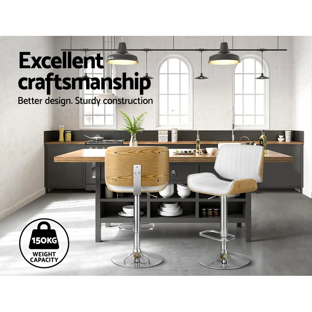 Artiss Galina Bar Stools, PU Leather, Bentwood, White, Adjustable Height 63-83cm, 360° Swivel, Contemporary Style