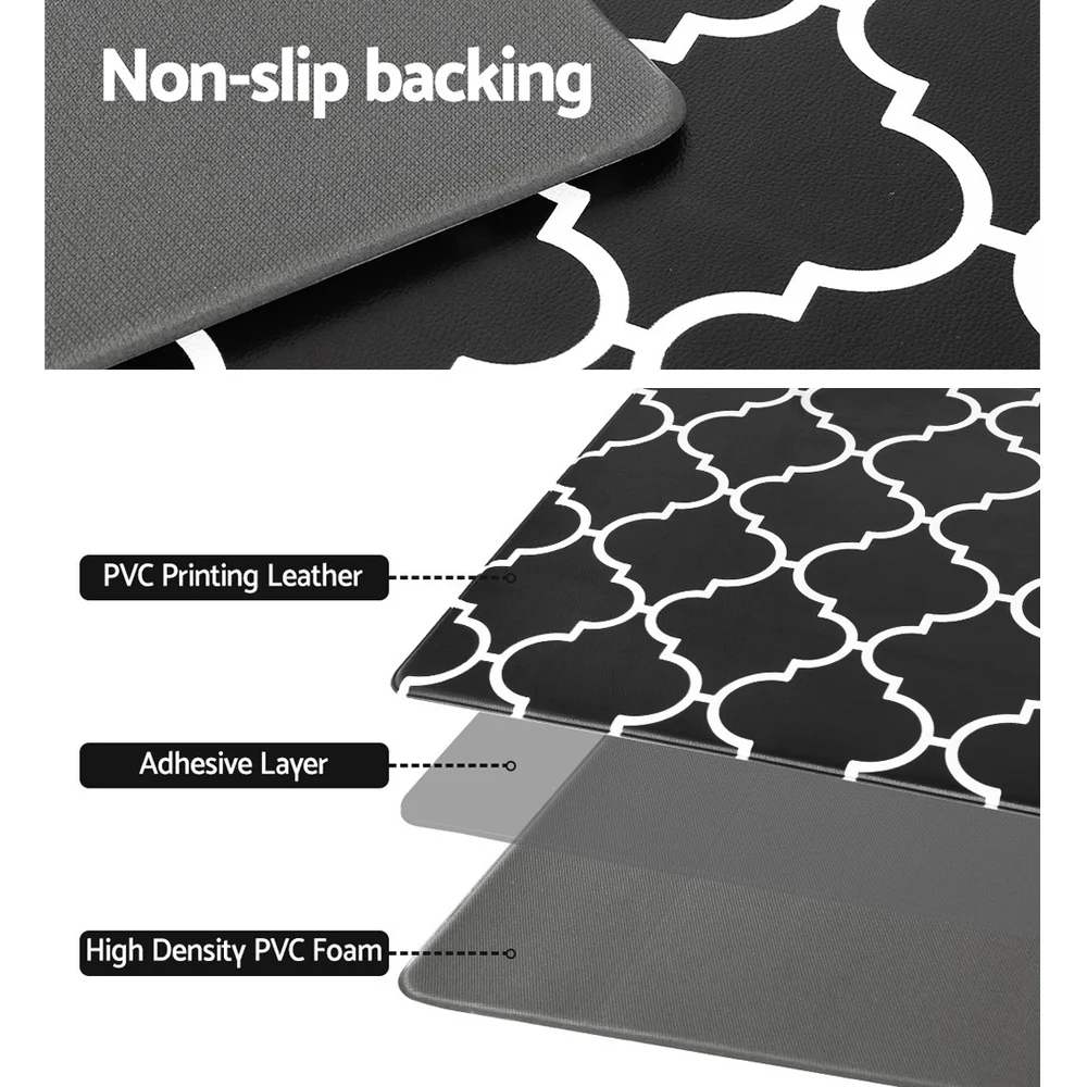 Artiss Gina 45x180cm Kitchen Mat - Non-Slip, PVC, Oil & Water Repellent, 5mm Cushioning, Black & White Design