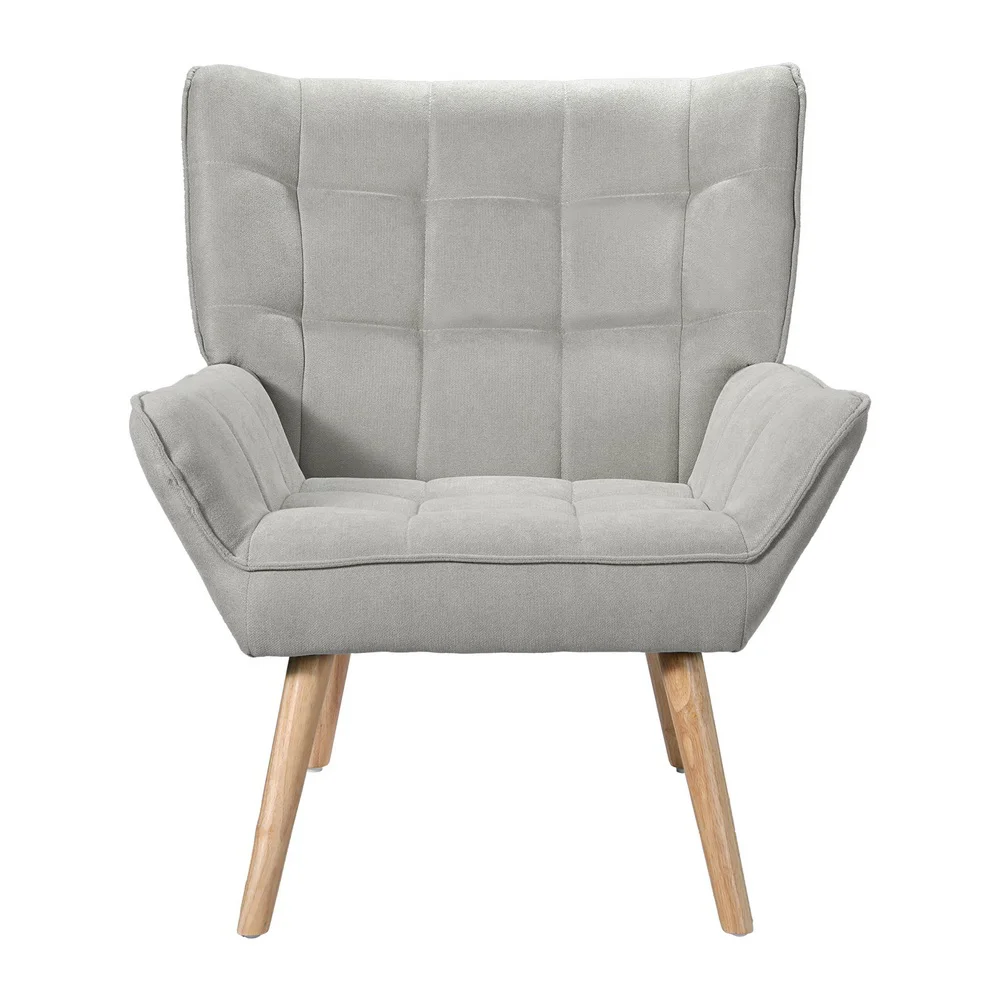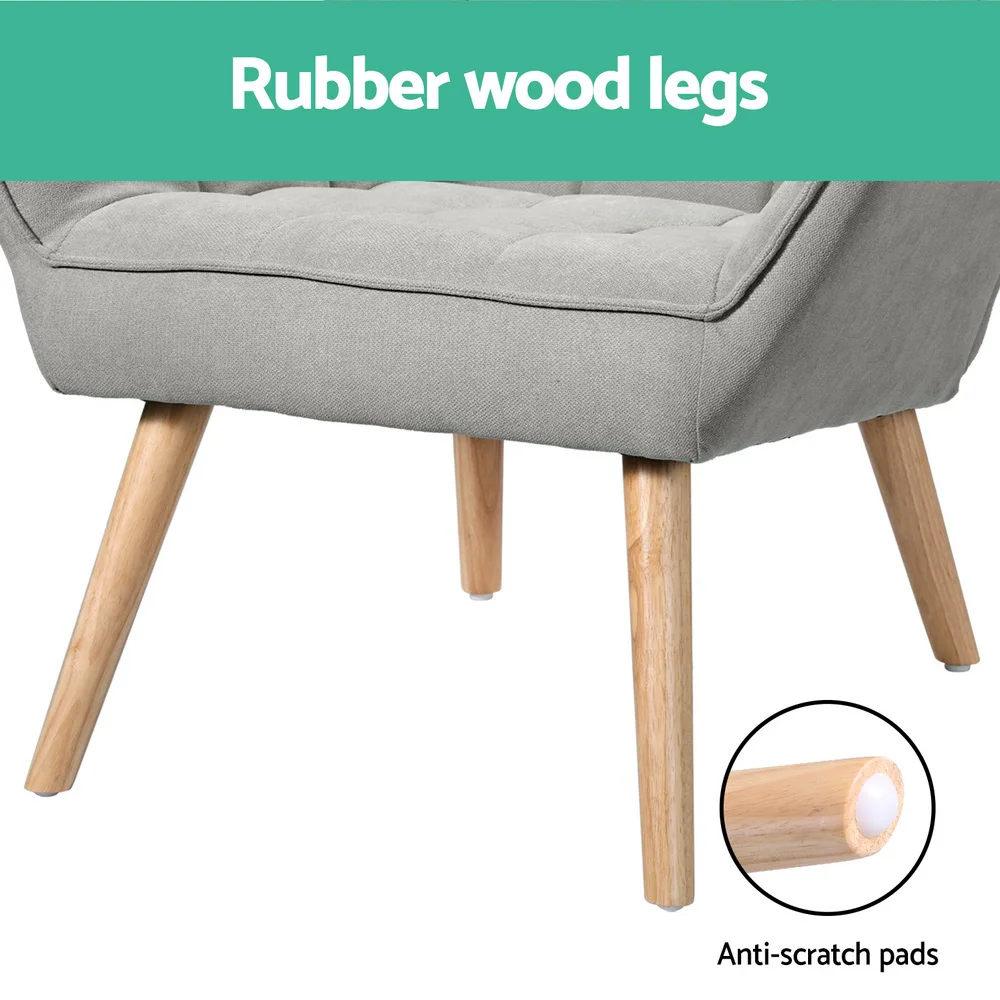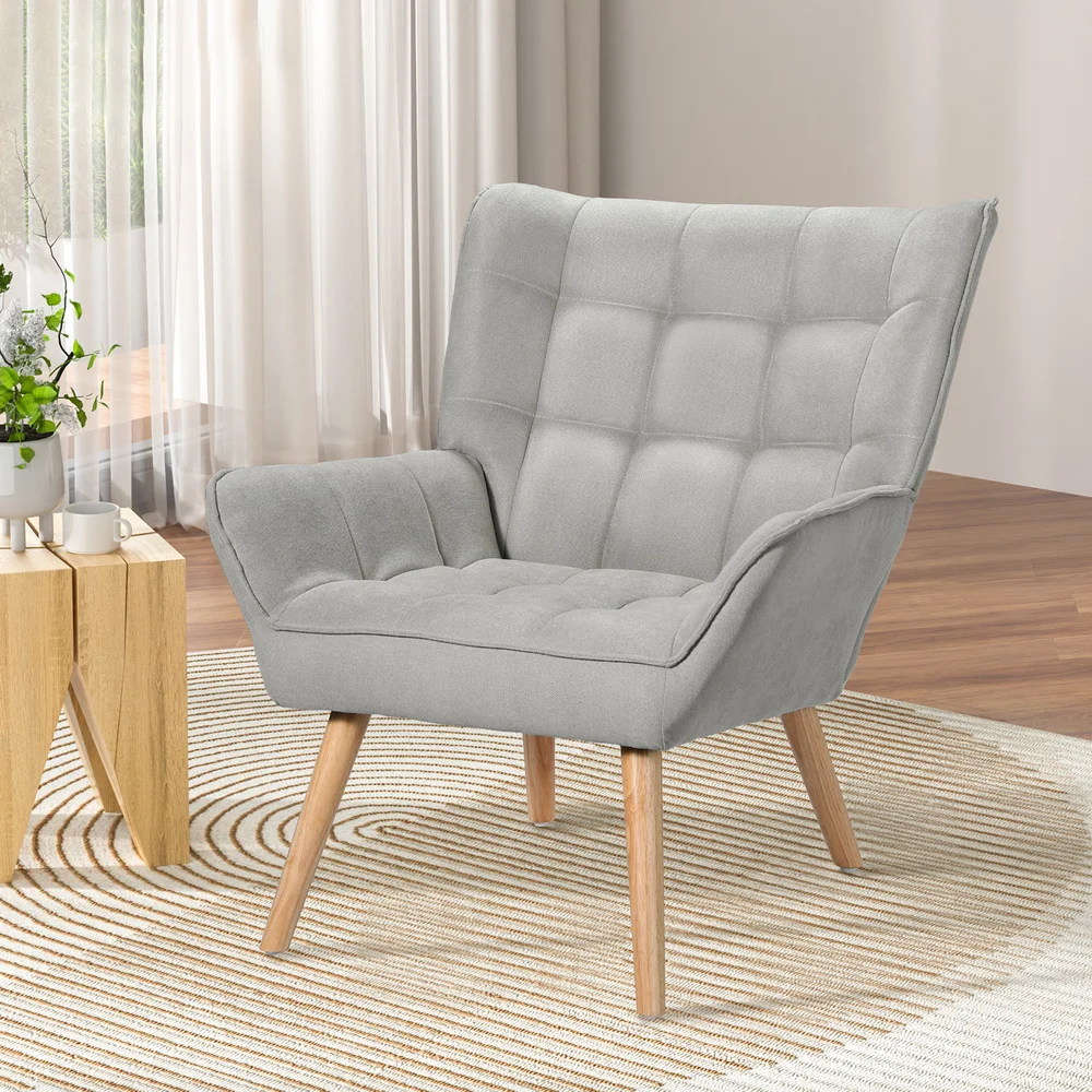 Artiss Armchair Lounge Chair, Grey Faux Linen Fabric, Modern Scandinavian Accent, 75x82x85cm, Tufted Cushion Seat