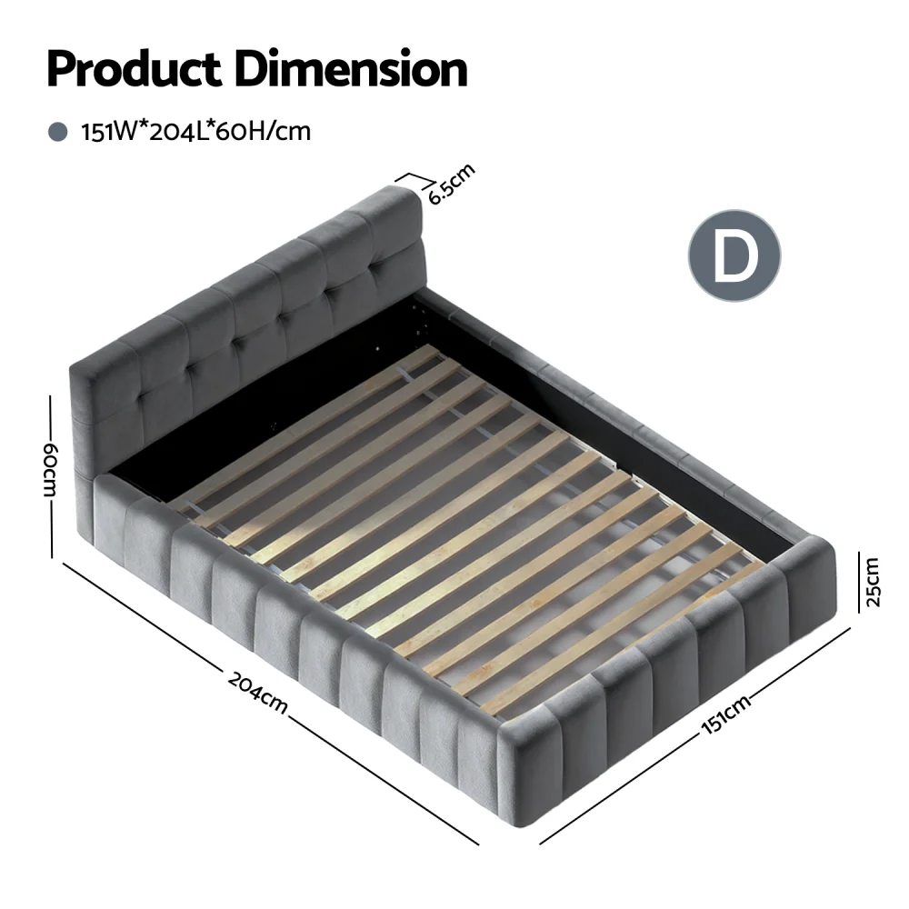 Artiss HAVEN Double Bed Frame with Plush Velvet Upholstery, Floating Headboard & Sturdy Platform Base in Grey