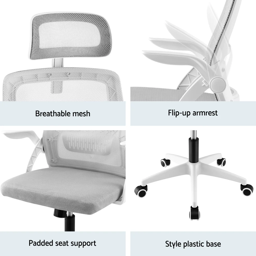 Artiss Ergonomic Office Chair with Adjustable Headrest, Lumbar Support, Mesh Material, Flip-up Armrests, 360° Swivel