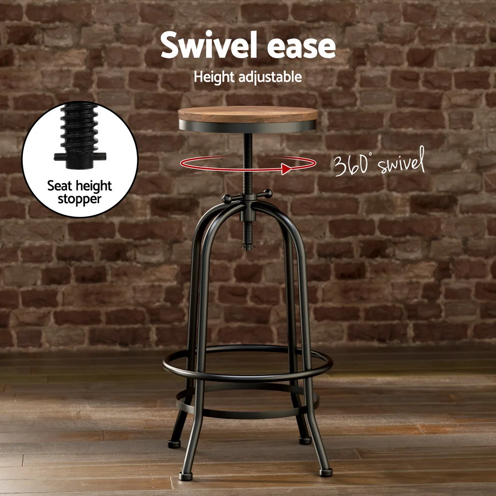 Artiss Industrial Bar Table and Stools Set - Elm Wood Top, Steel Frame, Adjustable Height, 360° Swivel, 1-Year Warranty
