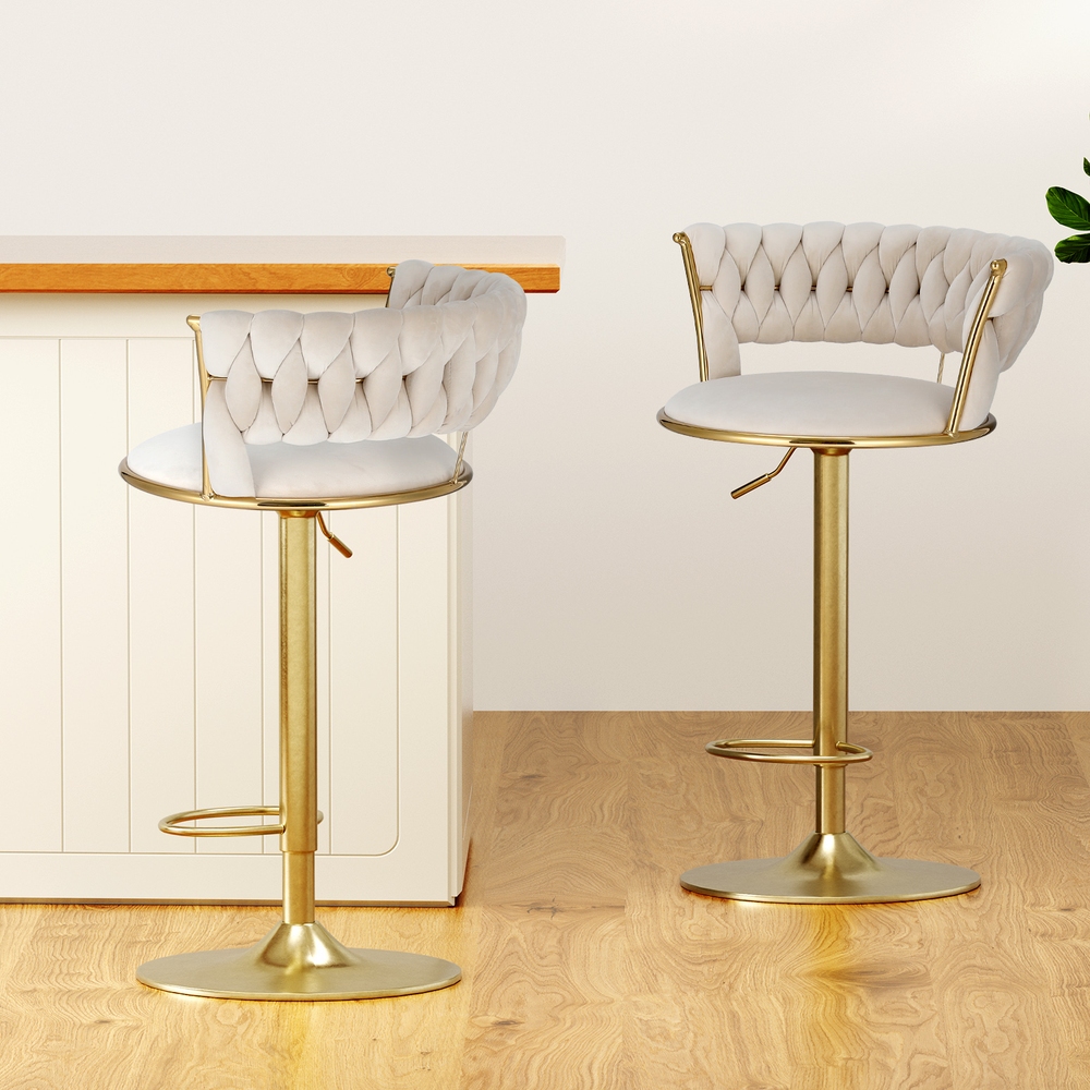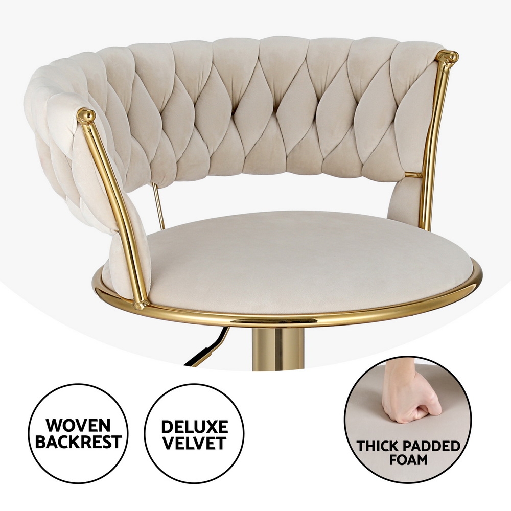 Artiss Vivien 2x Bar Stools - Gas Lift, Velvet Woven Backrest, Adjustable 360° Swivel, Ivory, 150kg Capacity