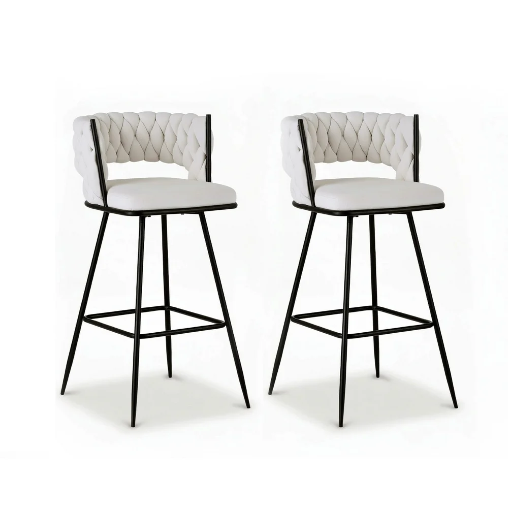 Artiss 2x Vivien Bar Stools - Woven Velvet, Metal, Ivory, 75cm, Ergonomic Design, Cushioned Back, 120kg Capacity