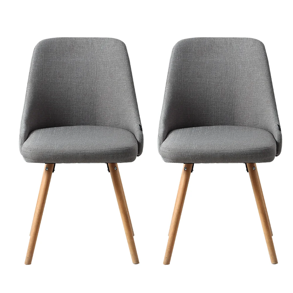 Artiss Kalmar Dining Chairs Set of 2 - Grey Upholstered Fabric, Solid Beech Wood Frame, Scandinavian Design, 81cm Height