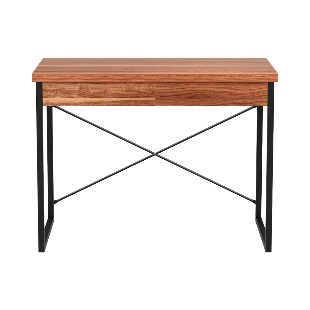 Artiss Karl 100CM Walnut Computer Desk with Storage Drawers | Durable Melamine Finish & Steel Frame for Home Office
