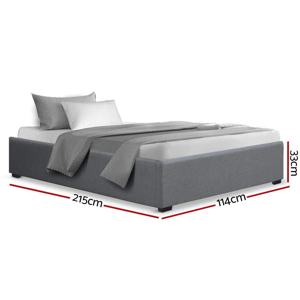 Artiss Toki King Single Size Gas Lift Bed Frame in Grey, Linen Upholstery, Storage Base, Reinforced Steel, Wood Slats