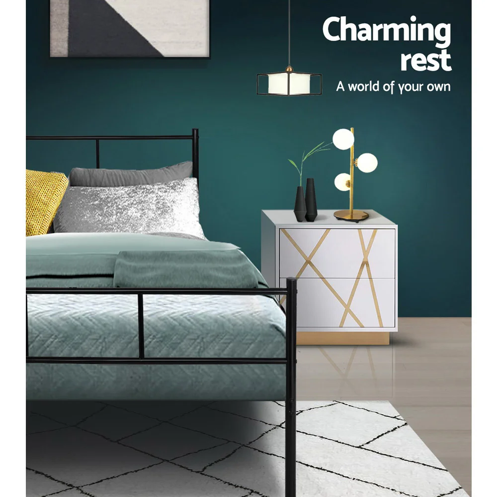 Artiss Sol King Single Bed Frame - Sturdy Black Metal with Powder-Coated Finish, Strong Support & Under-Bed Storage