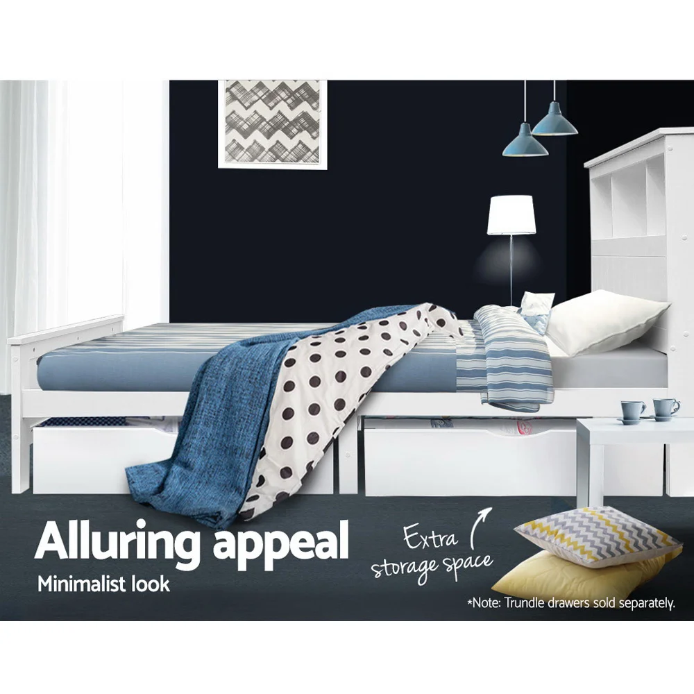Artiss King Single Bed Frame - White Pine Wood with Storage Shelves, Sturdy Plywood Slats, Eco-Friendly Finish