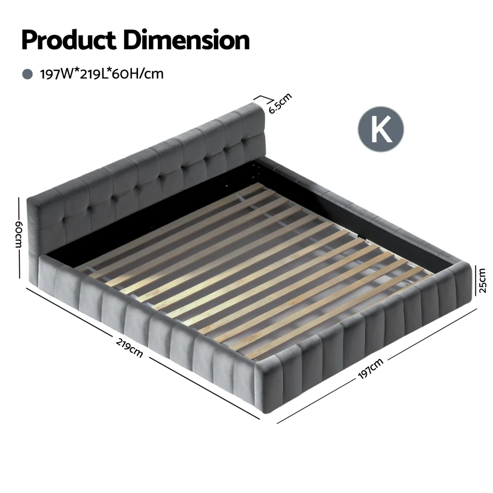Artiss HAVEN King Size Bed Frame - Plush Velvet Headboard, Modern Platform Base, Reinforced Plywood-Pine, Grey