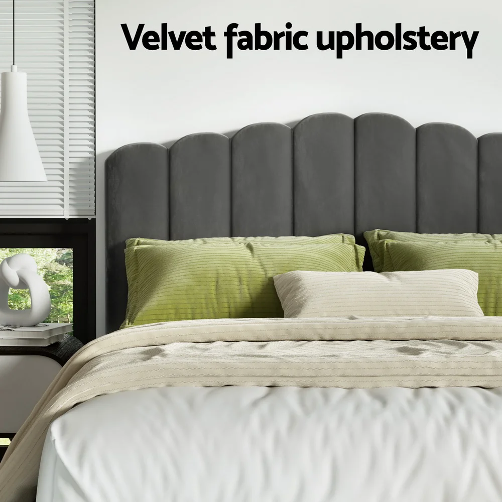Artiss FION King Size Bed Frame Velvet Grey Upholstered with Gas Lift Storage, Padded Headboard, Wooden Slats