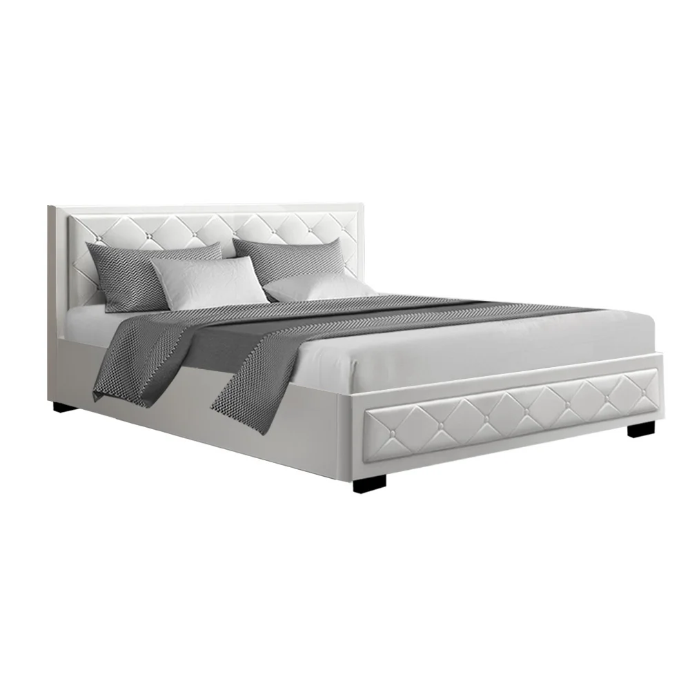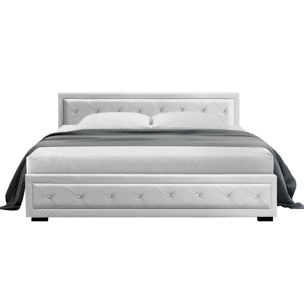 Artiss Tiyo King Size Gas Lift Bed Frame - White PVC Leather, Tufted Headboard, Ample Storage, 300kg Capacity